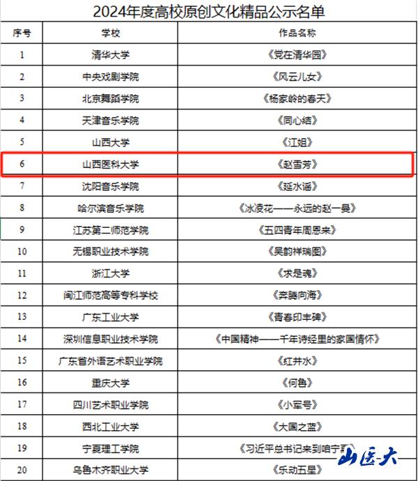 《赵雪芳》原创精品项目以我校优秀校友、全国首枚“白求恩奖章”获得者赵雪芳为原型,以舞台艺术的形式再现了她工作、生活的非凡历程,体现了“敬佑生命、救死扶伤、甘于奉献、大爱无疆”的医者精神。该剧自2019年在山西大剧院首演后,得到了社会各界的广泛好评,新华网、山西卫视、山西日报、太原晚报、太原电视台等多家媒体对首演活动进行了专题报道。