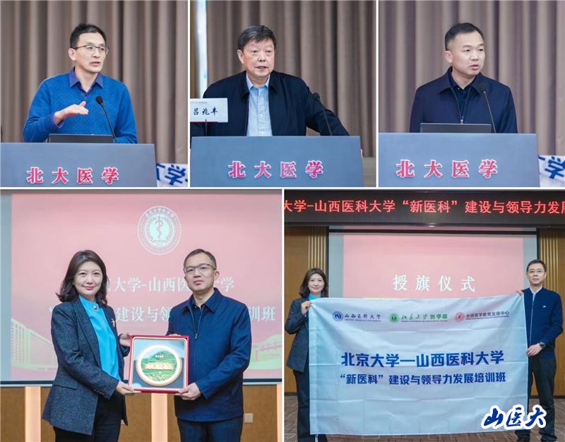 北京大学医学部副主任、全国医学教育发展中心常务副主任王维民出席开班仪式并致欢迎辞。焦向英在开班仪式上致辞,他对北大医学部的热情接待表示感谢,对前来参加培训学习的老师们为学校教育教学管理工作所付出的努力作出肯定,并对本次培训班的学习提出了具体要求。北京大学医学部继续教育学院执行院长张娟向焦向英赠送了文创纪念品,并向我校教务部部长覃凯授班旗。