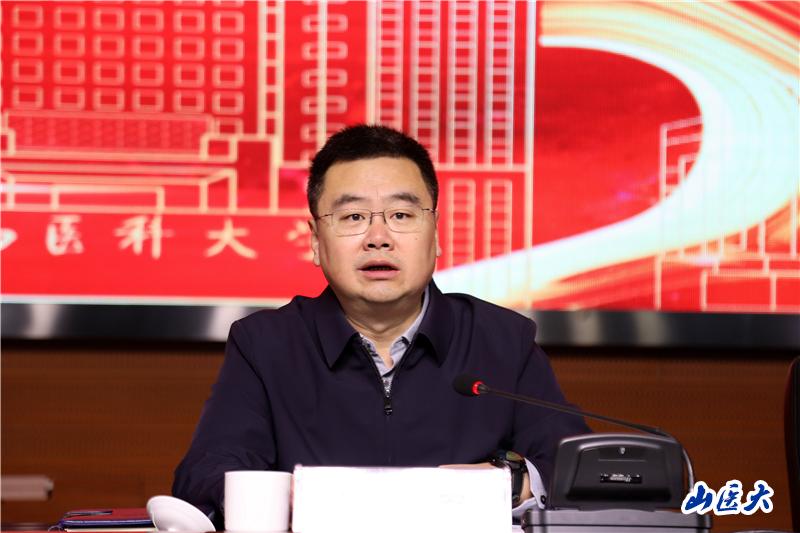 解军总结了过去一年学校建设发展取得的突出成绩,对2024年重点工作进行了部署。他指出,2023年学校牢牢扛起“双一流”创建使命,确立“2+1+1”学科建设工作思路,取得了一系列突破性进展和标志性成果,为推进学校高质量发展奠定了坚实基础。解军强调,在学校高质量发展滚石上山、爬坡过坎的关键时期,要高效统筹、贯通融合“双一流”创建与全国一流研究应用型医科大学建设,汇聚发展合力、增强发展动力;要坚持目标导向、结果导向,从时间定位、目标定位、标准定位上,进一步理清建设任务和工作要求,强化责任担当、全力抓好落实;要围绕工作要点提出的26个“坚持不懈”和8项重点工作,聚焦学科建设、教育教学、科研创新、人才引育、保障体系五个领域,建设一流优势学科、培养一流创新人才、培育一流科技成果、打造一流师资队伍、构建一流保障体系,打好学校高质量发展“组合拳”,以优异成绩迎接建校105周年。