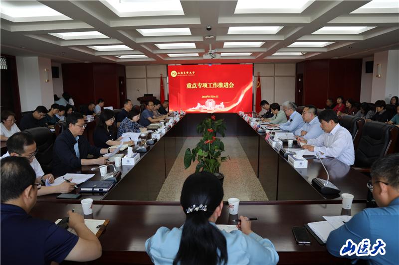 会上,赵文军代表学校作了讲话。他指出,今年是实现“十四五”规划目标任务的攻坚之年,是实现“双一流”创建突破的关键之年,也是建校105周年,学校到了加快高质量发展的重要节点。他强调,全校上下要认清发展形势,充分把握国家和山西省加快医学教育创新发展的良好机遇,坚决扛牢省委、省政府赋予学校“双一流”创建的职责使命,勇于担当、主动作为,牢牢把握高质量发展的主动权。要直面问题差距,聚焦各重点专项工作中存在的短板弱项,砥砺解决问题的自觉、增强解决问题的能力,逐条逐项深挖症结根源、找准路径方法,切实把破解发展难题作为打开工作新局面的突破口。要提升工作质效,以落实“2+1+1”学科建设思路、强化有组织科研体系构建、加强高层次人才引育、深化绩效考核与分配改革等重点难点工作为着力点,坚持改革创新、狠抓工作落实,以系统观念推动各项目标任务如期完成,以优异成绩迎接建校105周年。