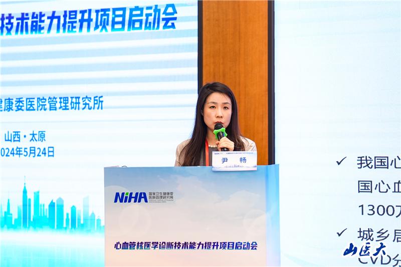 由国家卫生健康委医院管理研究所举办、我校承办的心血管核医学诊断技术能力提升项目启动会于5月24日在太原举行。国家卫生健康委医院管理研究所主任尹畅出席会议并作项目介绍。