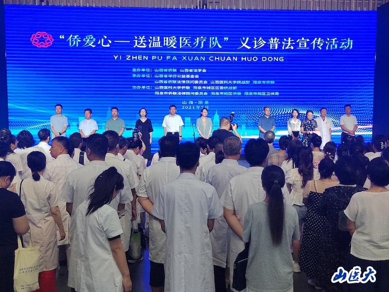 7月27日,由山西省侨联主办,我校侨联协办的“侨爱心-送温暖医疗队”义诊普法宣传活动在“阳泉记忆1947”文化园城市会客厅举行。山西省侨联党组成员、副主席闫芳,我校党委副书记彭月兰出席启动仪式并分别讲话。阳泉市人大常委会党组成员、副主任孔禄泉宣布启动仪式开始,市侨联党组书记温敏芬主持启动仪式。