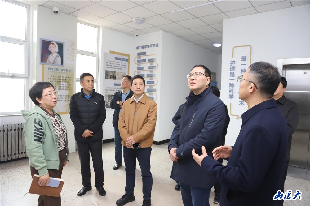 会议结束后,焦向英陪同王玉庆、李忠贵一行参观了学校机关分工会的“职工小家”“郑洁劳模创新工作室”“南丁格尔工作室”等处。