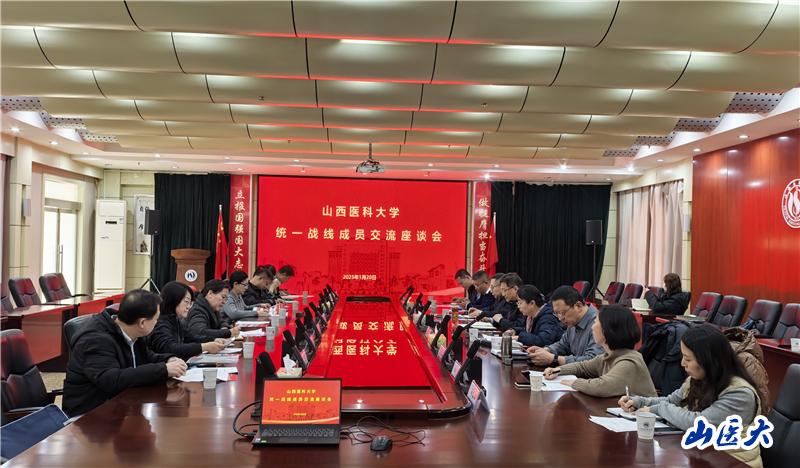 1月20日下午,我校在迎泽校区召开统一战线成员交流座谈会。校党委书记王军,校党委副书记彭月兰出席会议。学校相关部门负责人,第一医院和第二医院负责统战工作的同志,学校6个民主党派和2个统战团体负责人参加了座谈会。王军在会上讲话。会议由彭月兰主持。