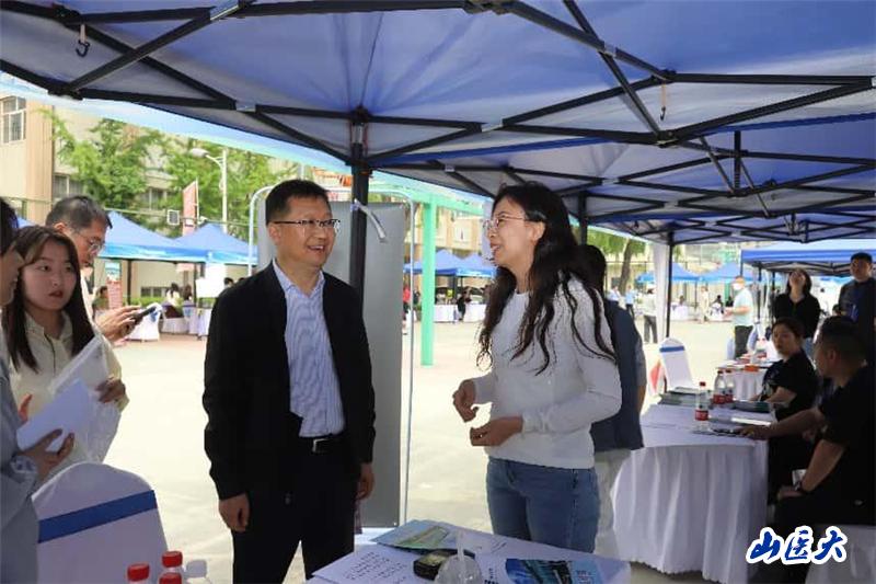 5月26日下午,我校在迎泽校区篮球场举办2025届毕业生专场招聘会,旨在离校前夕再次为毕业生搭建医学人才与用人单位对接的桥梁,创造更多就业机会。校党委书记王军莅临招聘会现场指导。