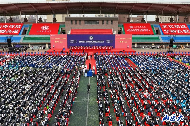 校长解军以“聚灯为炬 守责护民,在人民最需要的地方奋笔书写健康中国新篇章”为题为毕业生们送上深情寄语和美好祝福。他指出,回望来时路,大家同步奋进,共同见证了学校“厚植沃土”的育人硕果、“攀登高峰”的学科荣光、“摘星揽月”的科创辉煌和“勇担使命”的家国情怀。他向毕业生提出三点期望:放眼寰宇,做真理的永恒追光者,永葆对未知世界的好奇与渴望,勇立潮头,探索不息;根植华夏,做时代的无畏答卷人,将个人抱负融入国家需求,以卓越才识破解生命奥秘、用创新担当守护人民健康;心系母校,做山医辉煌的共建者,用实际行动汇聚推动山医这座百年医学殿堂破浪前行的磅礴动力。