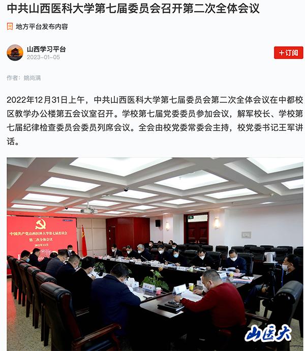 全会认为,学校第七次党代会和七届一次全会以来,校党委带领全校师生医护员工,认真学习宣传贯彻党的二十大精神和中央、山西省委决策部署,紧紧围绕学校第七次党代会提出的目标任务和工作要点,统筹疫情防控和学校事业发展,各项事业稳步发展,取得了很多新成绩,学校呈现出良好发展势头,在全校师生医护员工的共同努力下,学校稳步开启了建设全国一流研究应用型医科大学的新征程。