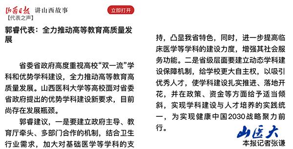 山西日报 | 郭睿代表:全力推动高等教育高质量发展
