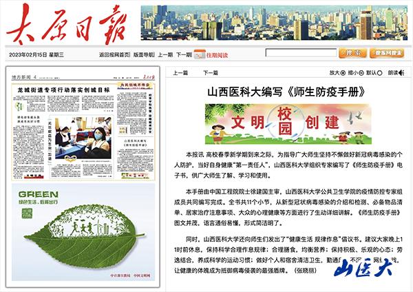 太原日报 | 山西医科大编写《师生防疫手册》